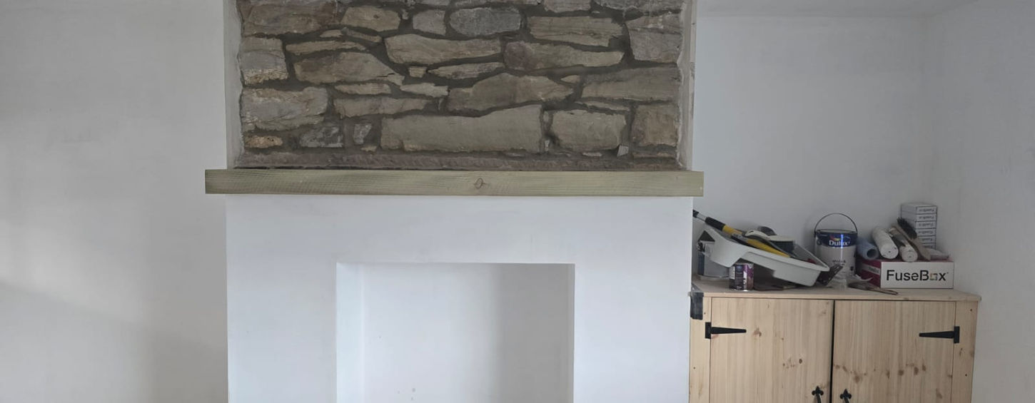 We began by carefully removing the old fireplace to reveal beautiful exposed stonework - now the standout feature of the room. The result is a cosy yet contemporary focal point that adds instant warmth and character.